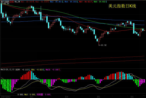 昨日(6月13日)美元指数小幅下挫,开盘94.65,最高94.75,最低94.24,收盘94.36,跌幅0.30%,日线报收饱和中阴线,全球股市普跌和英国退欧风险刺激美元指数短线下挫,黄金期货及日元等避险资产小幅上涨。...【详情】